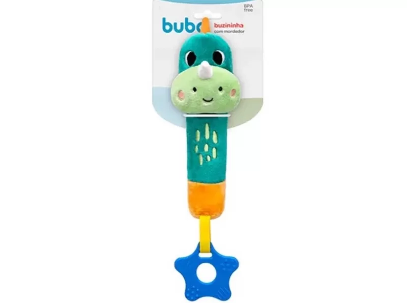A Buzinha com Mordedor Bubazoo Dino da Buba é ideal para entreter e desenvolver os sentidos do bebê. Macia, com som de buzina e tons vibrantes, estimula o tato, a audição e a visão dos pequenos. Possui mordedor, ideal para aliviar o desconforto causado pelo nascimento dos primeiros dentinhos.