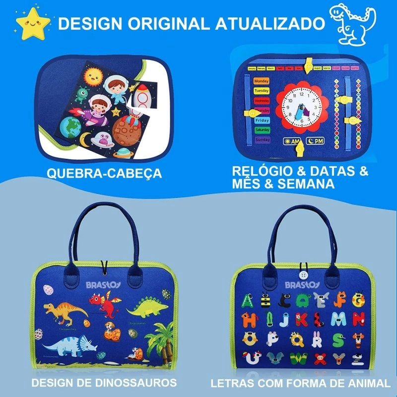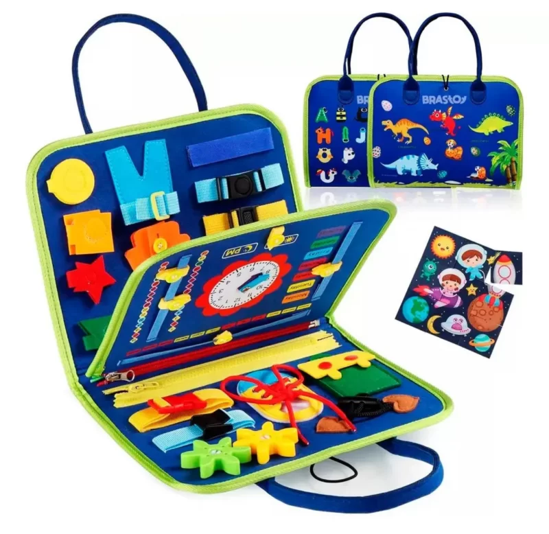 Essa maleta sensorial desperta o aprendizado e a diversão com várias atividades, como zíper, cadarço, botão e quebra-cabeça, que estimulam habilidades motoras e cognitivas. Portátil, seguro e ideal para viagens, é fácil de usar e perfeito para mãos pequenas.