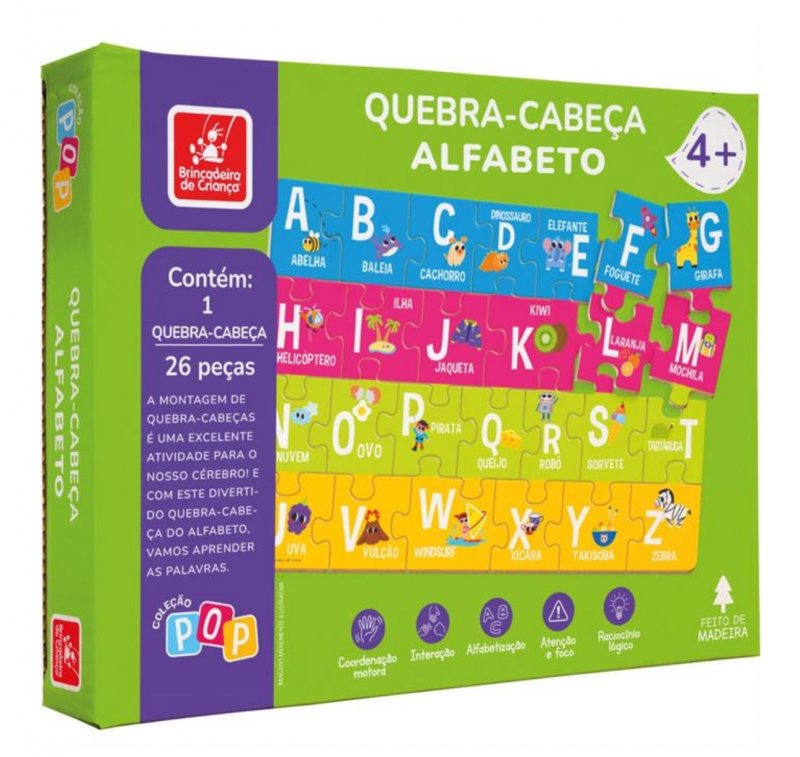 Quebra-Cabeça Madeira Alfabeto 26 Peças - Brincadeira De Criança
