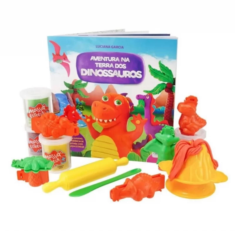 Livro Uma Aventura na Terra dos Dinossauros com Vulcão com Massinha - Estrela