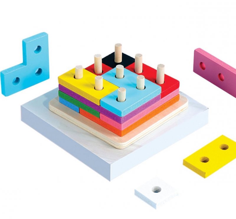 Brinquedo Pedagógico Madeira Encaixe Formas e Cores Tetris - Toy Mix