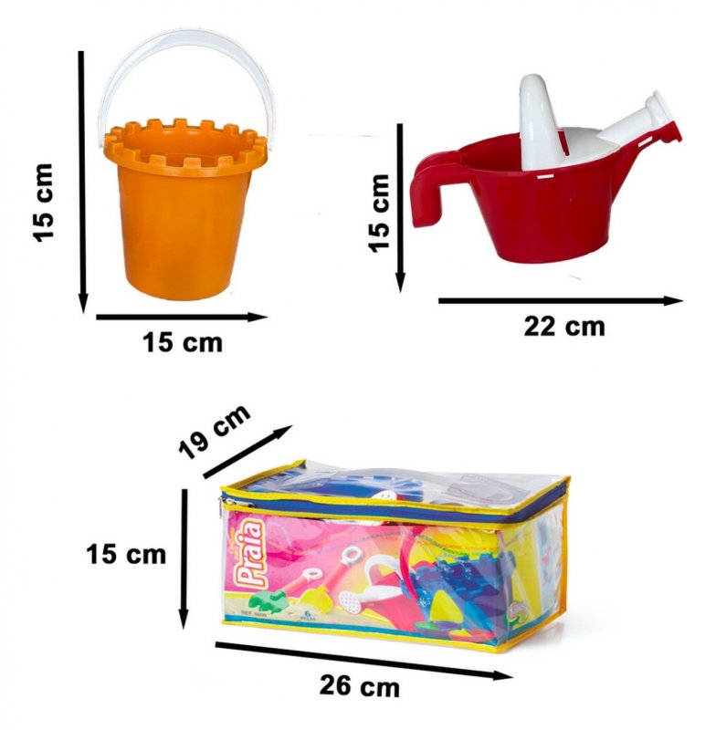 Um kit prático e completo para brincar na areia! Inclui baldinho, pá, rastelo, regador, barquinhos e forminhas, tudo em uma embalagem com zíper para fácil transporte. Estimula a coordenação motora e a criatividade com cores vibrantes e muita diversão.