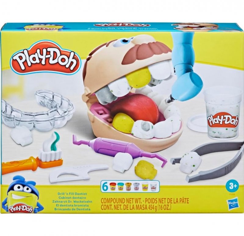 Desperte a criatividade com o Conjunto Massinha Play-Doh - Brincando de Dentista! Inclui 1 cabeça de dentista, 9 acessórios temáticos e 8 potes de massinha Play Doh (2 potes de Play Doh Burst e 2 potes de Play Doh metálica). Uma forma divertida de ensinar cuidados dentários e estimular a imaginação dos pequenos.