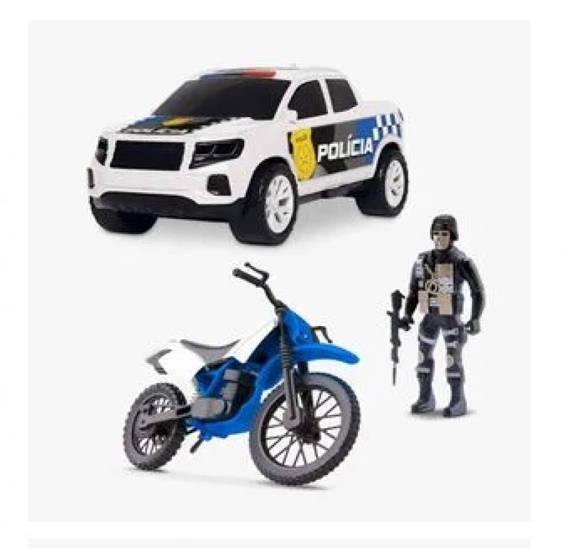 Kit Força Tarefa da Polícia com Carro Pick-Up, Moto e Boneco - Samba Toys
