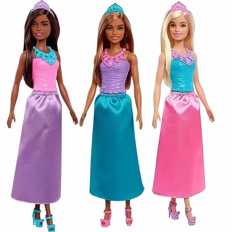 Esta linda Princesa Barbie está pronta para um Baile Real! Ela vai brilhar com seu lindo corpete lilás com detalhes característicos e saia azul. Os sapatos, o colar e a tiara completam o visual. Entre em seu próprio reino de contos de fadas com essa graciosa Princesa!