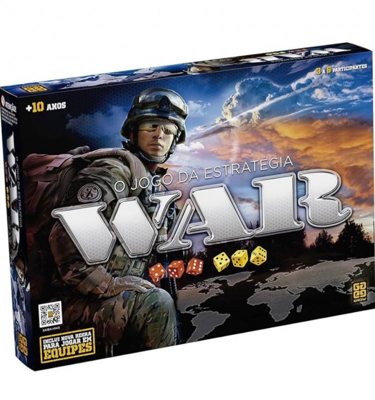 War (baseado no jogo americano Risk) é disputado com um mapa do mundo dividido em 6 regiões (Europa, Ásia, África, América do Norte, América do Sul e Oceania). Cada jogador recebe uma carta com um determinado objetivo e quem completar primeiro o seu e declará-lo cumprido é o vencedor. É disputado em rodadas, nas quais os participantes colocam exércitos e atacam outros oponentes. Uma partida pode durar várias horas, com disputas, regidas pela estratégia dos jogadores e pela sorte lançada pelos dados.