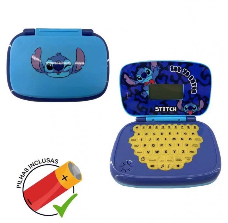 Com o Laptop Educativo Candide inspirado no Stitch, a diversão e o aprendizado andam juntos. Esse brinquedo bilíngue (português e inglês) traz diversas atividades interativas, como música, letras, palavras, ortografia, perguntas e respostas, soma e divisão. Perfeito para estimular o conhecimento de forma lúdica e divertida!