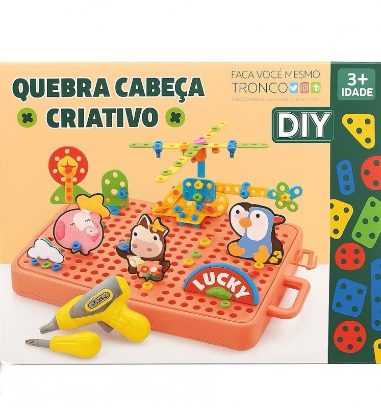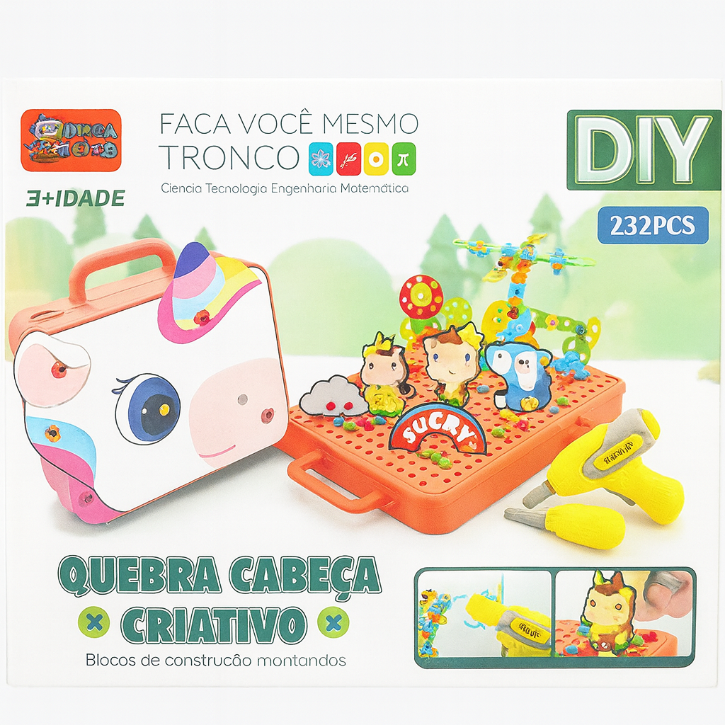 Ideal para pequenas engenheiras, esse brinquedo de montagem estimula a criatividade e as habilidades motoras de forma divertida! A criança pode montar figuras em 2D e 3D com peças variadas, como parafusos, porcas e conectores. Acompanha chave de fenda elétrica, ferramentas manuais, uma parafusadeira a pilha e um manual colorido com sugestões de montagem. Tudo isso vem numa maleta prática e fácil de levar para onde quiser!