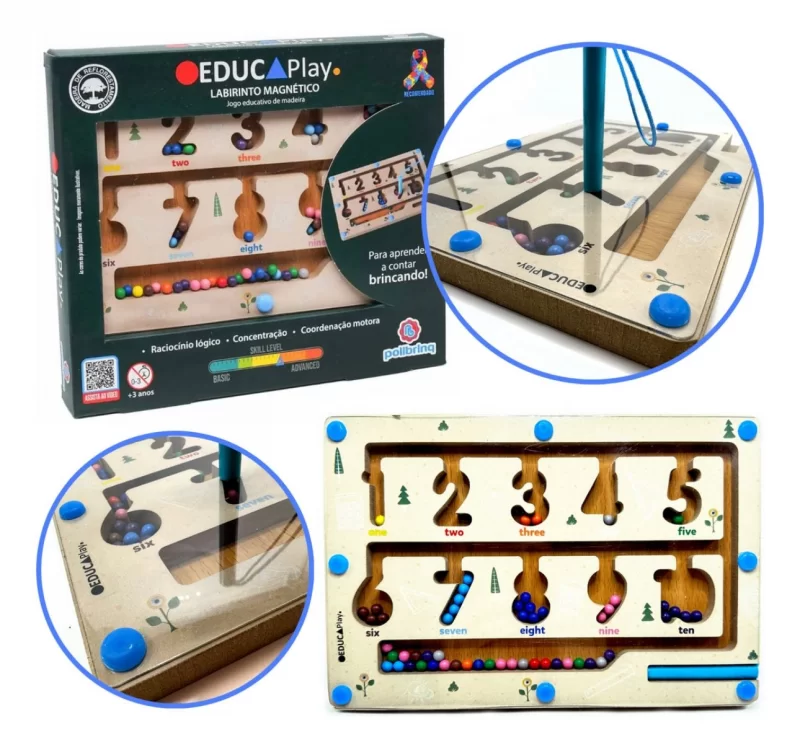 Uma jornada cheia de descobertas! Com a caneta magnética, as crianças movem bolinhas pelos caminhos do tabuleiro, enquanto desenvolvem coordenação motora fina, raciocínio lógico e concentração. O brinquedo também trabalha cores, adição, subtração e números em inglês — tudo de forma prática e divertida. Ideal para aprender brincando em casa ou na escola!