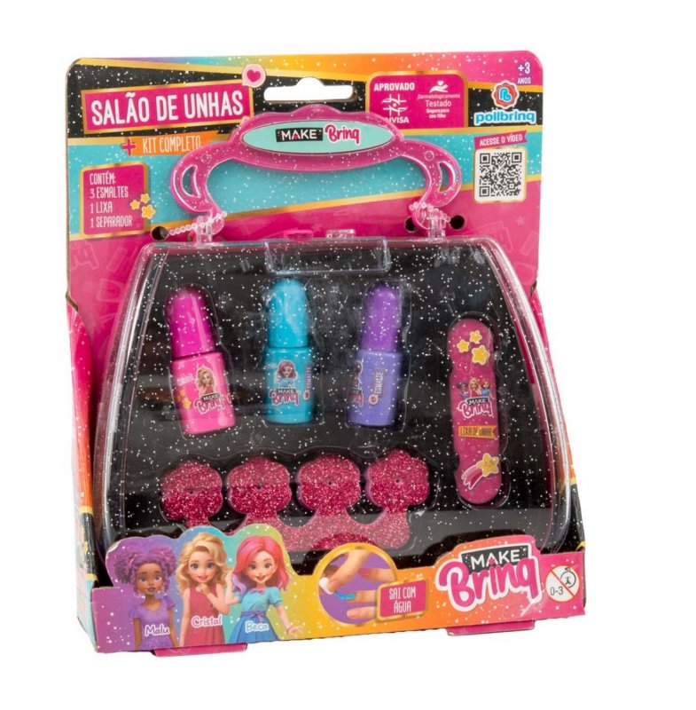 Deixe a criatividade fluir com o Salão de Unhas! Com esmaltes coloridos, acessórios e tudo o que as crianças precisam para se divertir criando unhas cheias de estilo, o kit oferece uma brincadeira segura e cheia de brilho. Ideal para momentos de socialização e muita imaginação!