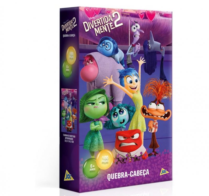 Entre no universo das emoções com esse quebra-cabeça encantador de Divertidamente 2! Com 100 peças, ele traz uma ilustração colorida dos personagens favoritos da nova aventura da Disney, estimulando o raciocínio lógico, a concentração e a coordenação motora das crianças.