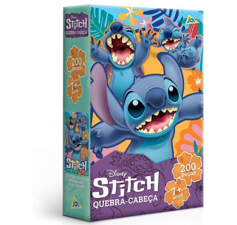 Monte uma cena cheia de fofura com o adorável Stitch! Este quebra-cabeça de 200 peças é perfeito para quem ama desafios leves e quer curtir momentos de concentração e relaxamento. Ao final, a imagem colorida e divertida do personagem vai encantar fãs de todas as idades.