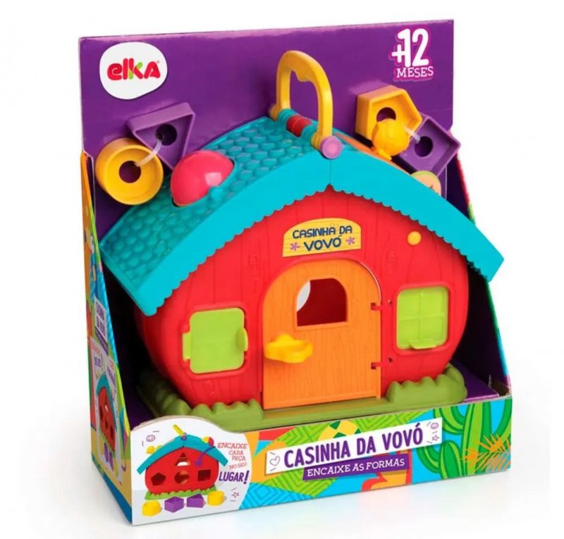 Casinha da Vovó com porta e chave, formas para encaixar, telhado que abre e fecha a janelinha com surpresa.