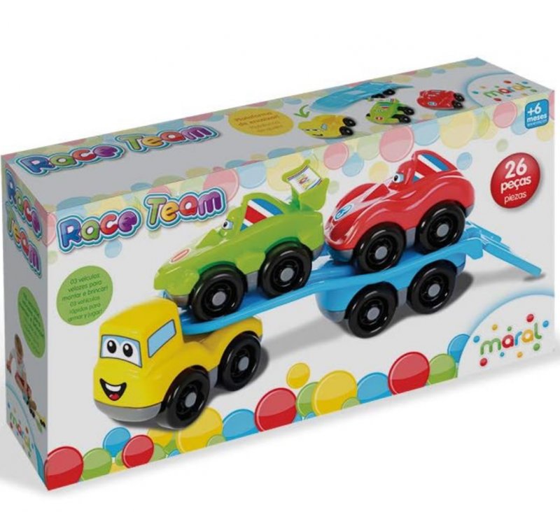 Com esse kit da Maral, a criança pode montar até 3 veículos de corrida diferentes usando blocos grandes e coloridos. As peças são fáceis de encaixar, ideais para as mãozinhas pequenas, e vêm com adesivos para personalizar os carrinhos. Uma brincadeira educativa que estimula a criatividade e a coordenação motora.