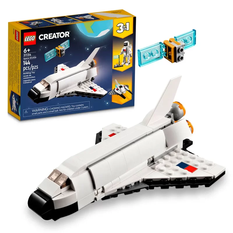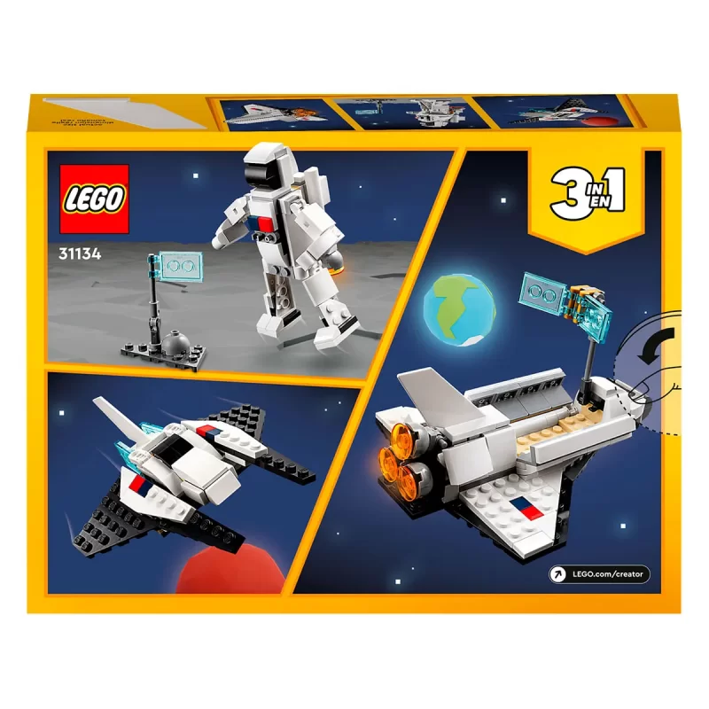 Com este incrível conjunto 3em1, as crianças podem viver aventuras espaciais de diferentes formas: construir um Ônibus Espacial realista, transformá-lo em um Astronauta articulado ou em um poderoso Foguete Espacial.