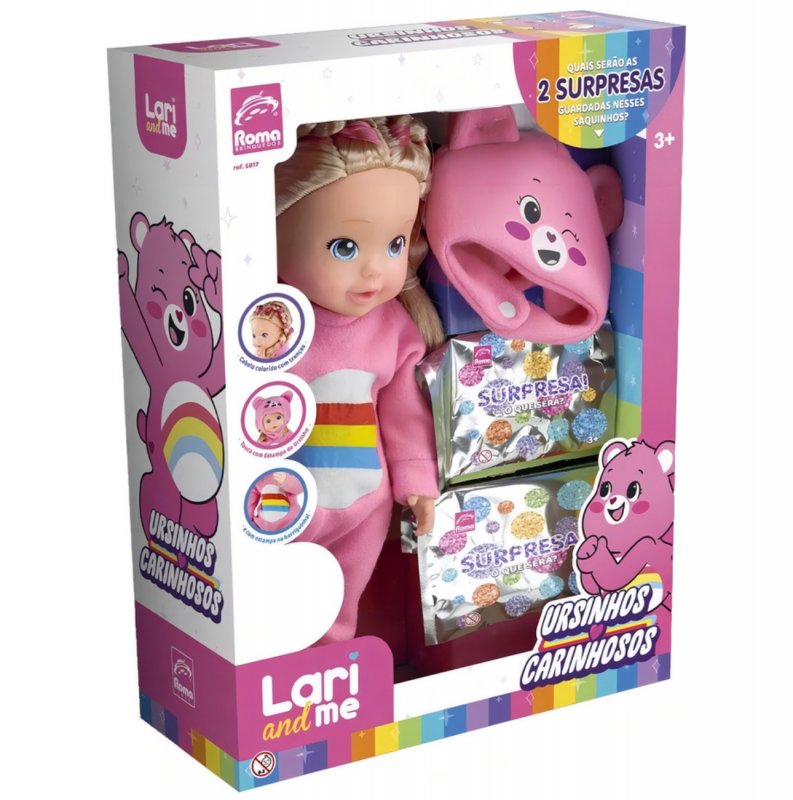 Direto do mundo encantado, a Lari and Me – Ursinhos Carinhosos chega com sua roupinha personalizada e super fofa! Uma linda boneca com cabelos longos e coloridos, vestida com macacão e touca temática de ursinho rosa. Gostosa de apertar, tem um cheirinho maravilhoso e ainda acompanha 2 surpresas especiais!