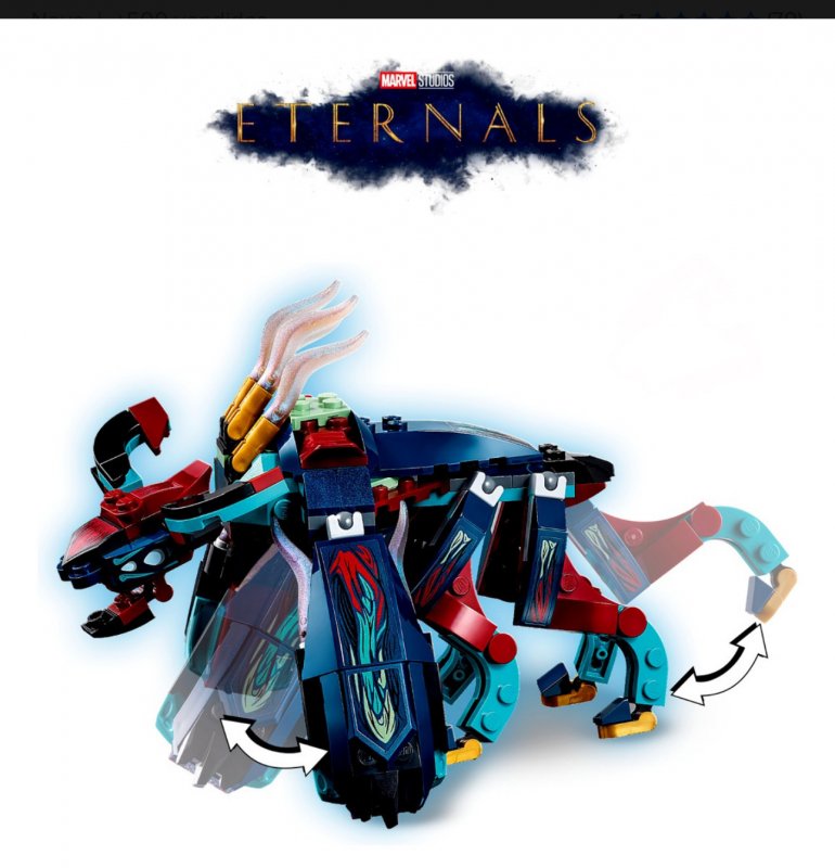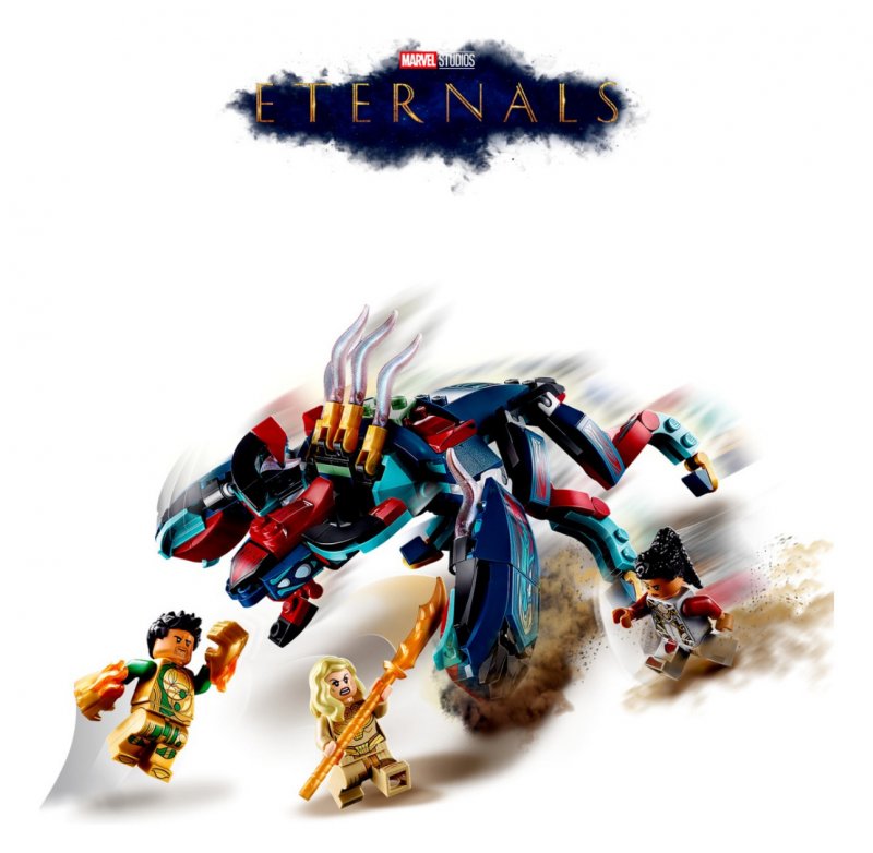 Entre no mundo dos Eternos e viva batalhas incríveis! Monte o Deviant articulado de 6 pernas e mandíbulas móveis e brinque com as minifiguras de Thena, Makkari e Gilgamesh. Um conjunto cheio de ação para recriar cenas do filme ou criar suas próprias aventuras.