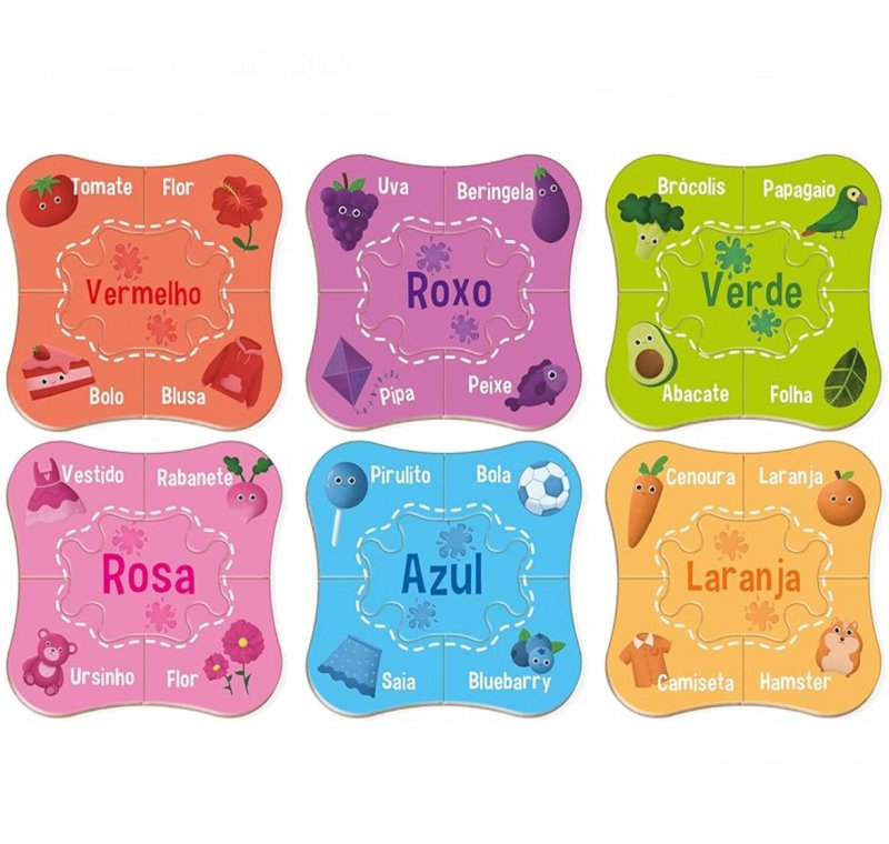 Com este quebra-cabeça educativo, as crianças aprendem brincando a reconhecer e associar cores de forma divertida. O jogo é composto por 30 peças em madeira que formam 6 mini quebra-cabeças coloridos, estimulando a lógica, a atenção e a coordenação motora fina. Um jeito lúdico e encantador de unir aprendizado e diversão no dia a dia.