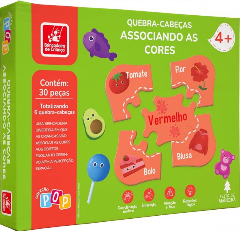 Quebra-Cabeça Associando as Cores – 30 Peças em Madeira - Brincadeira de Criança