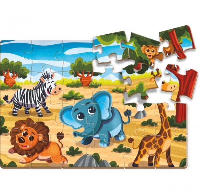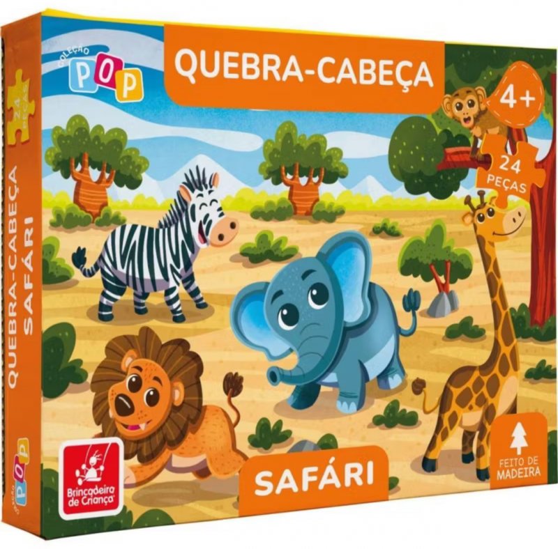 Quebra-Cabeça Madeira Safari 24 Peças – Brincadeira de Crianç