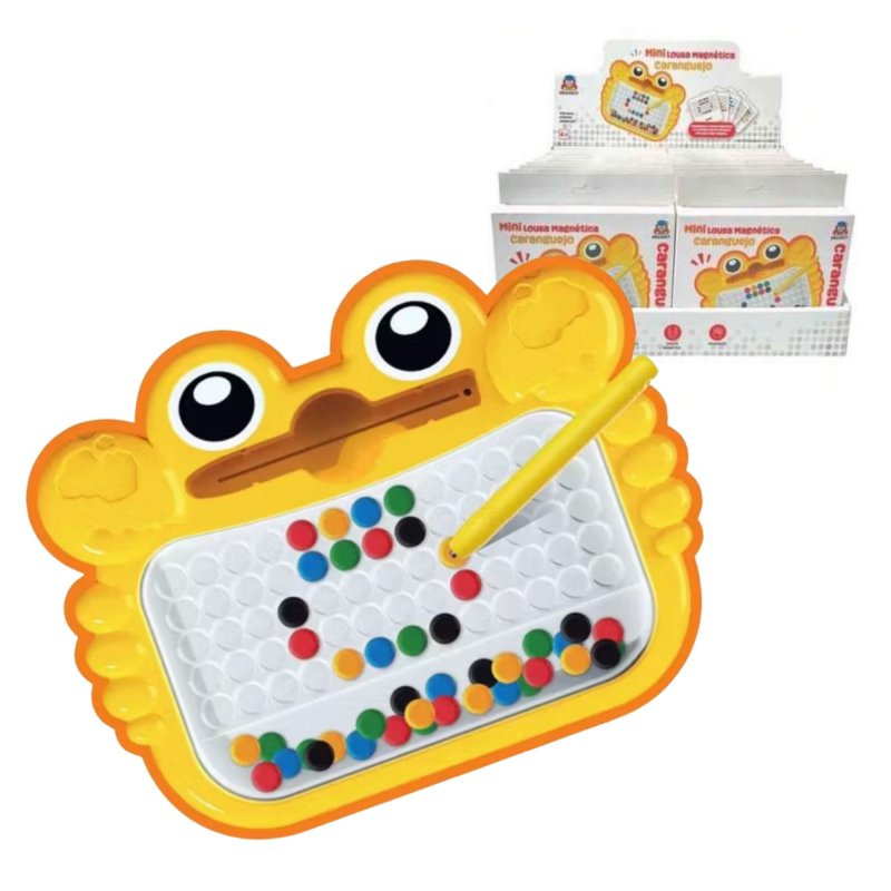 A Mini Lousa Caranguejo da Braskit é perfeita para incentivar a criatividade dos pequenos! Acompanha caneta magnética e cartões com desenhos para copiar, permitindo desenhar e apagar sem sujeira. Compacta, leve e divertida, é ideal para brincar em qualquer lugar.