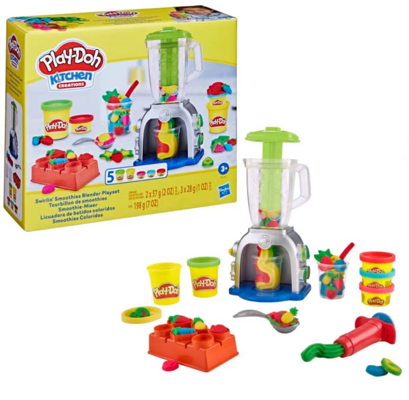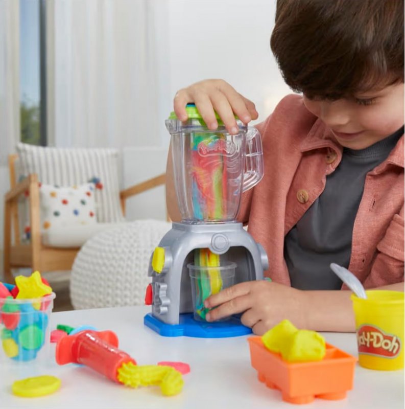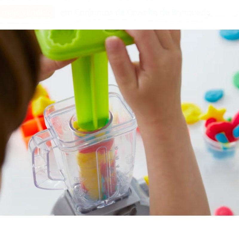 Um conjunto divertido em que a criança cria “smoothies” imaginários usando massinhas Play-Doh. O liquidificador funciona com acionamento manual: basta colocar a massinha no copo, girar a alavanca e ver a mistura sair como se fosse uma bebida de verdade. Acompanha potes de massinha e acessórios para decorar, estimular criatividade e brincadeiras de faz-de-conta. Perfeito para treinar coordenação motora e criar combinações coloridas. Uma experiência sensorial divertida e cheia de imaginação.