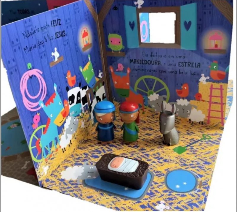 Uma forma encantadora de apresentar às crianças a história do Natal! O livro se transforma em um cenário divertido, enquanto os pequenos utilizam os 4 personagens para recriar o nascimento de Jesus. Incentiva a imaginação, a contação de histórias e o aprendizado sobre esse momento tão especial. Ideal para brincar em família e reforçar valores de amor e união.