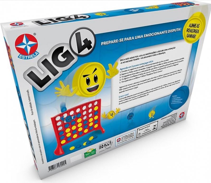 O clássico Lig 4 da Estrela garante partidas cheias de estratégia e diversão. O objetivo é simples: alinhar quatro peças da mesma cor antes do adversário. Fácil de montar e jogar, é perfeito para estimular o raciocínio lógico, atenção e pensamento rápido, tornando cada rodada empolgante para crianças e adultos.