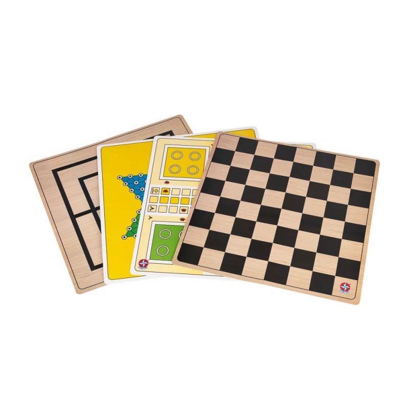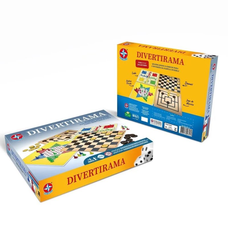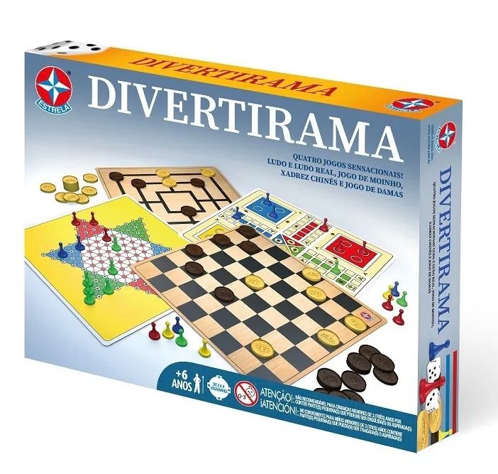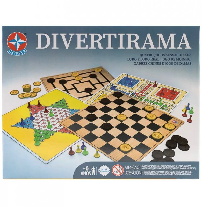 O Divertirama da Estrela reúne quatro jogos clássicos em um só produto oferecendo muita diversão e estratégia para toda a família. Acompanha tabuleiros e peças para jogar Ludo, Ludo Real, Jogo de Moinho, Xadrez Chinês e Jogo de Damas garantindo variedade e entretenimento em qualquer ocasião.