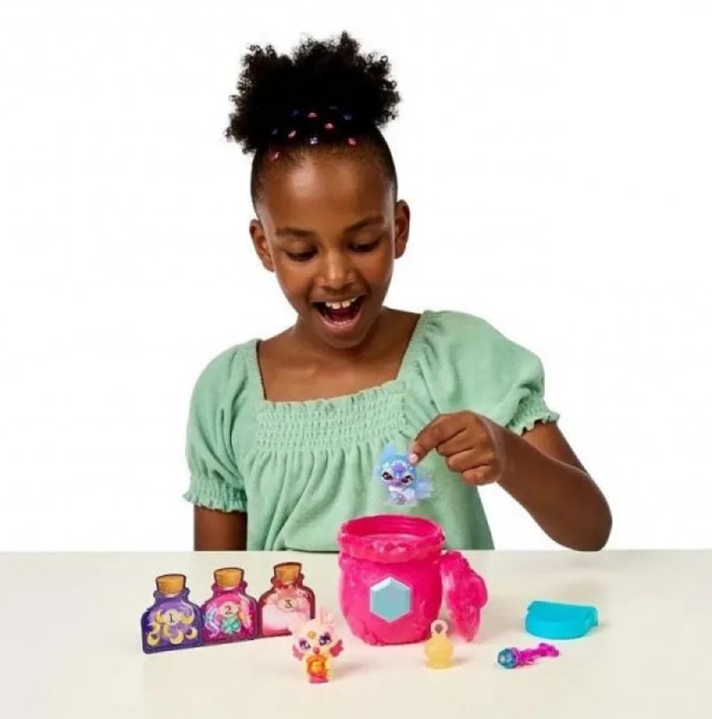Um brinquedo mágico que transforma a brincadeira em uma experiência surpresa. Ao misturar a poção no caldeirão, a criança revela personagens encantados, estimulando imaginação, curiosidade e o faz de conta.